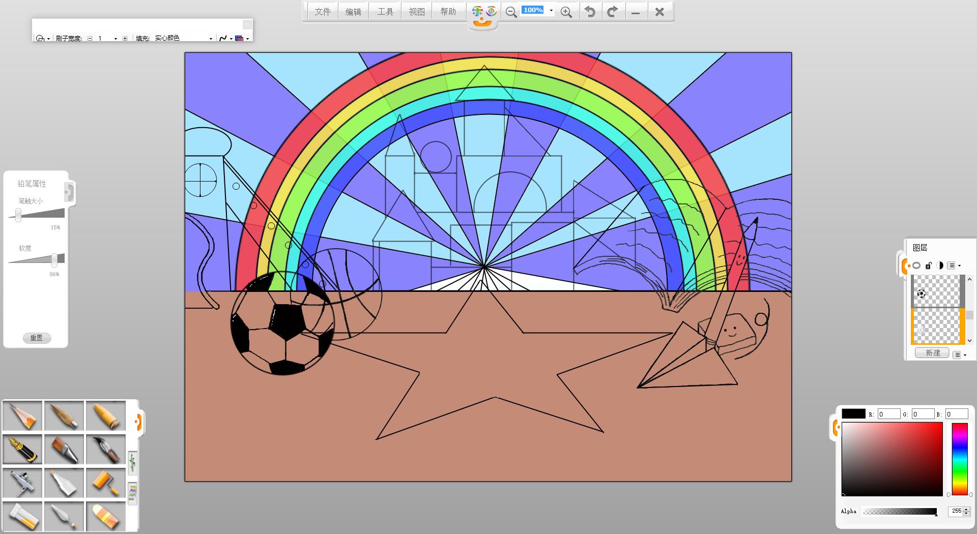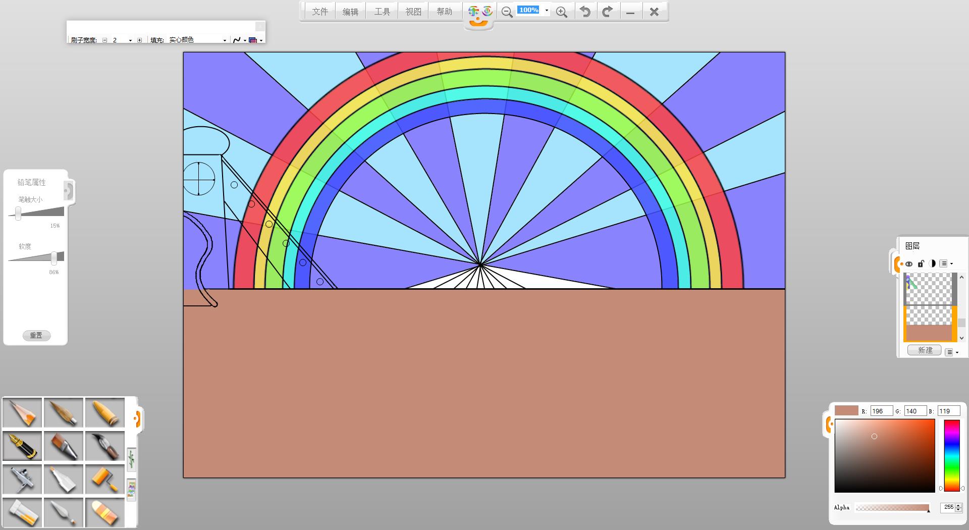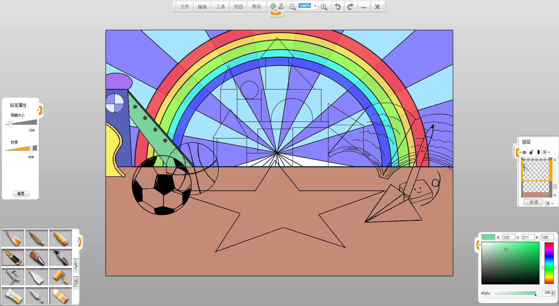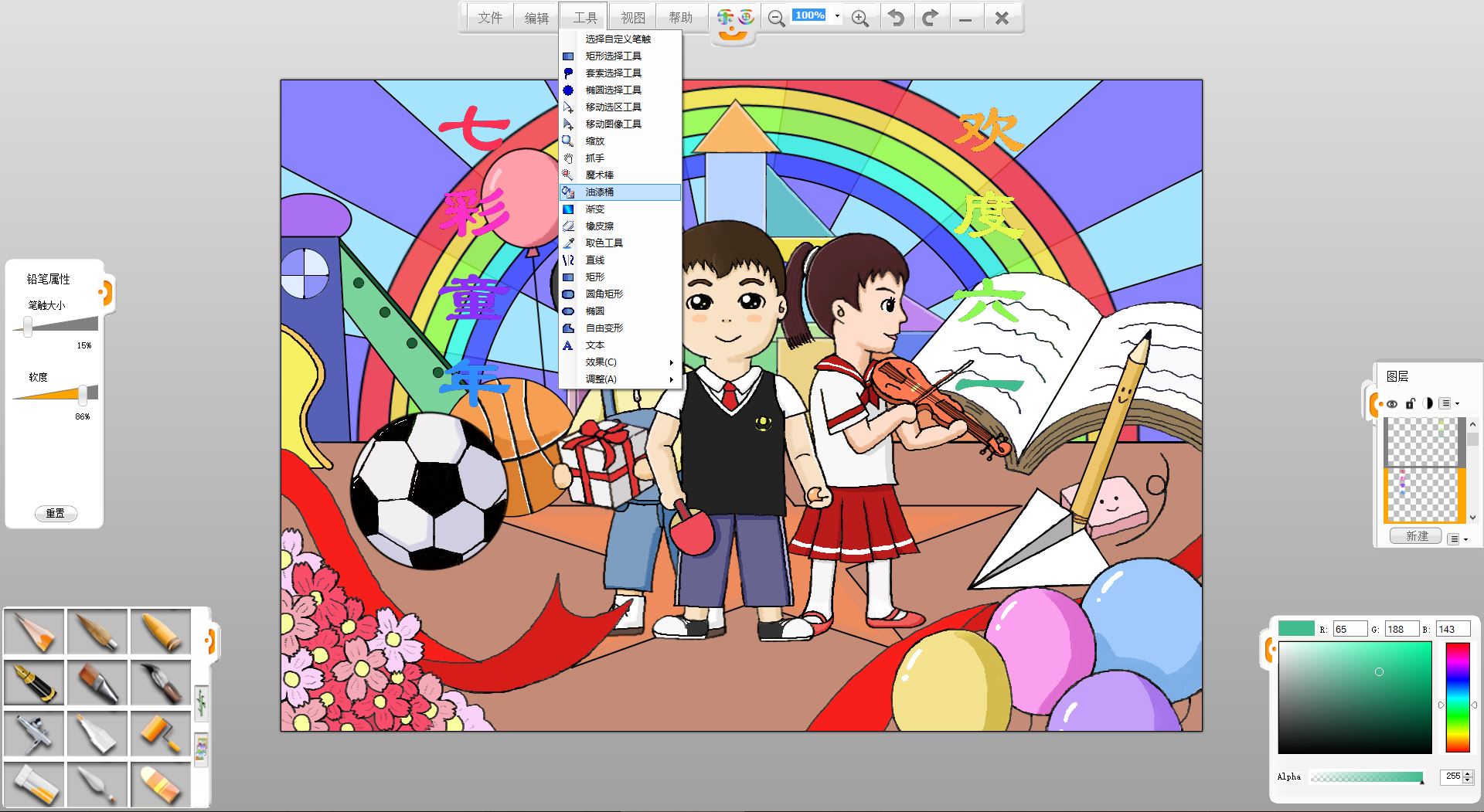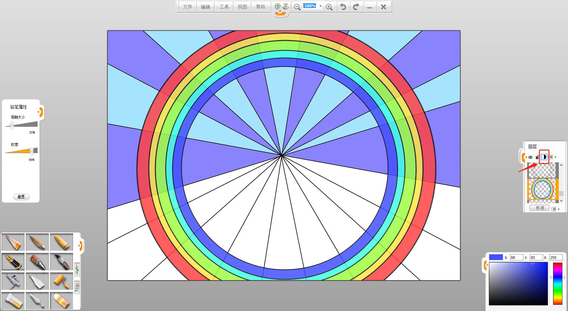 14.使用魔術(shù)棒工具選區(qū)后,使用油漆桶工具上色,繪制出彩虹。