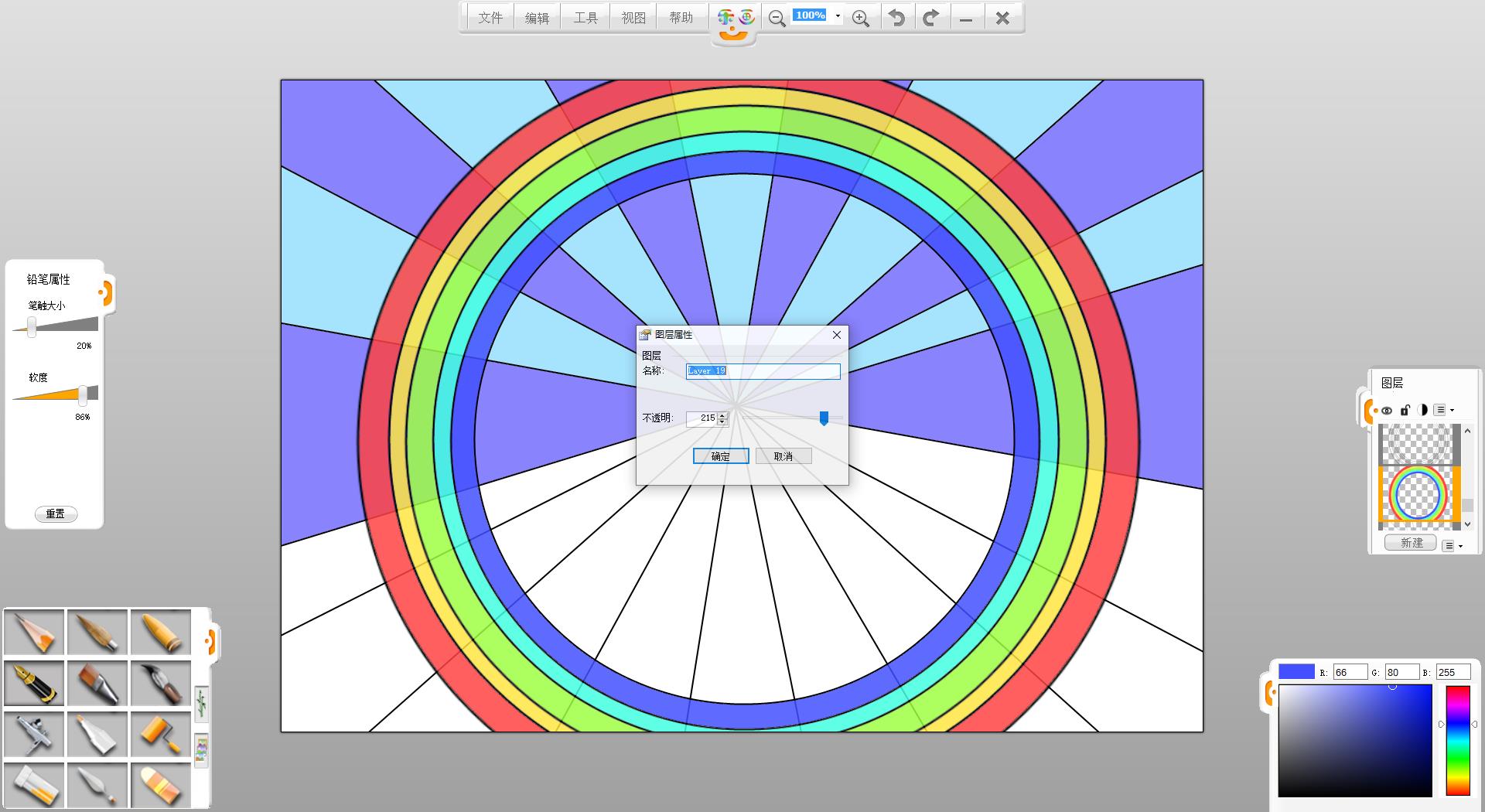 15.點擊圖層透明度按鈕,將顏色圖層的透明度調(diào)低至215。