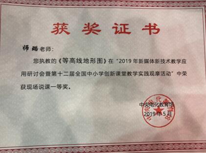 創新又有趣的課堂,將學生難以理解的知識點轉化成有趣、生動的方式進行呈現,對師生來說不僅提高了課堂效率,同時增加了學生的學習興趣。師璐老師地理現場說課《等高線地形圖》在眾多課程中脫穎而出,獲得了全國一等獎。