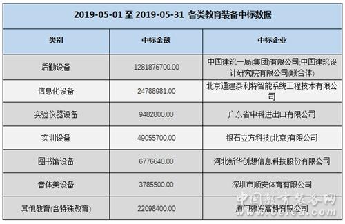 附:2019年5月已有教育裝備類別數據中累積最高中標金額及其所屬企業。