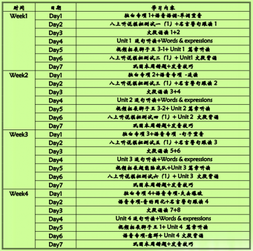 英語能力的提升,畢竟還是要通過成績體現出來,所以,每周要堅持英語聽說套題的練習。規范,定時(每天10到20分鐘),養成良好的學習習慣。
