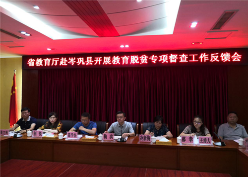 鞠洪指出,此次教育脫貧專項督查是貫徹落實習近平總書記關(guān)于脫貧攻堅重要講話精神,抓實中央、省關(guān)于脫貧攻堅系列決策部署的重要活動,對于相關(guān)縣教育脫貧工作以及實現(xiàn)整體脫貧出列有積極促進作用。整體來看,各縣高度重視教育脫貧攻堅工作,堅持把教育作為全縣脫貧攻堅主戰(zhàn)場,做出了大量卓有成效的工作,但同時也存在著保障不力、督查不夠、資金欠撥等問題。對下一步教育脫貧工作,鞠洪強調(diào),一是教育戰(zhàn)略定位要再提升,要繼續(xù)加大投入,保障“三個增長”,筑牢發(fā)展根基。二是控輟保學工作要再強化,進一步落實政府、教育雙線推進的控輟保學工作機制,確保教育脫貧攻堅實現(xiàn)控輟保學雙清零目標。三是精準資助工作要再提高,對欠撥的資助資金及其他教育專項資金要及時足額撥付到位。四是教育工程進展要再加快,在保證安全和質(zhì)量的前提下,加大各項教育工程推進力度,確保工程按時完成。五是中職學校服務能力要再提升,要找準職業(yè)學校與地方發(fā)展的契合點,科學設(shè)置相關(guān)專業(yè),為地方經(jīng)濟社會發(fā)展和脫貧攻堅培養(yǎng)高素質(zhì)技術(shù)技能人才。六是東西部教育“組團式”幫扶要再深入,要搶抓歷史機遇,主動對接、熱情服務,把責任變?yōu)橛H情,借力發(fā)展。
