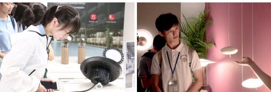 立達信銷往全球112個國家及地區(qū)的產(chǎn)品均在展廳展出,“琳瑯滿目”的照明產(chǎn)品及物聯(lián)網(wǎng)解決方案也引起同學們極大的興趣。