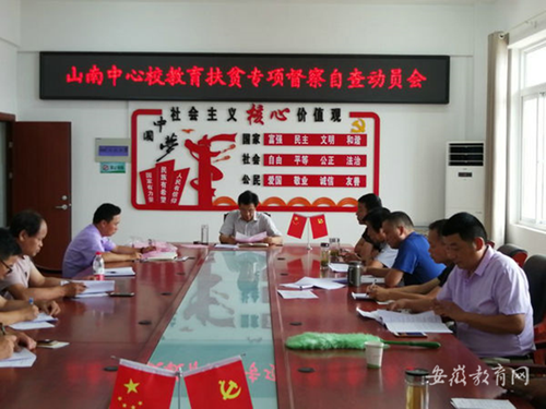 7月初,肥西縣教體局召開全縣中心學校校長專題會和全縣教體系統扶貧專項會議,布置落實縣扶貧開發領導組第五次會議要求和縣領導指示精神。會議指出,督查將采取鄉鎮中心學校自查和縣級督查兩種形式,確保巡視巡察反饋問題整改落實、排查“兩不愁三保障”突出問題,宣傳教育政策。縣教體局黨委書記、局長、肥西師范學校校長李振華明確要求:各學校要組織家校聯系人,聯合村居扶貧專干,進村入戶,對照排查內容,逐項核實。命令就是號角,會議結束,各校紛紛行動起來,扎實開展扶貧排查工作。