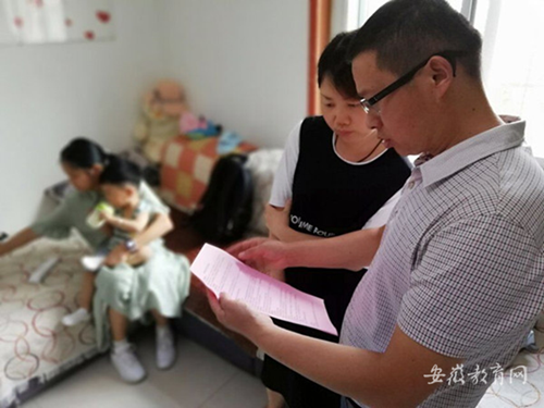 深入宣傳,提高知曉率。扶貧工作組頂著烈日,腳踏熱浪,深入村郢,挨戶進行走訪,深入宣傳。對長期不在家的建檔立卡戶,山南中學利用微信、QQ和電話等方式,聯系上家長,宣傳政策,確保政策宣講和學生政策享受到位,提高群眾滿意度。董崗中心校向家長發放《肥西縣教育扶貧政策解讀》宣傳單,并逐項講解,保證家長聽得懂、記得住。