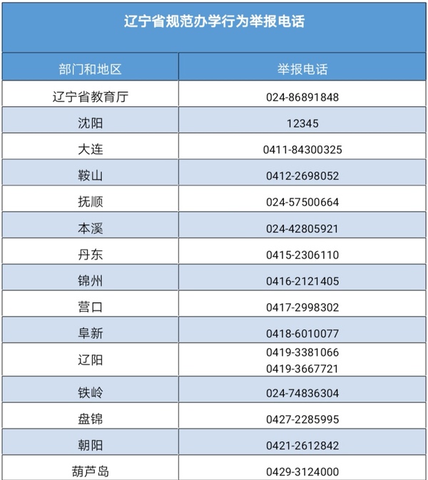 為切實規(guī)范中小學辦學行為,暢通人民群眾投訴舉報渠道,今天遼寧公布各地規(guī)范辦學行為舉報電話,歡迎社會各界參與監(jiān)督。