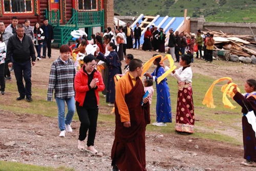 尼瑪活佛接待本次玉隆拉措希望學校啟用儀式工作人員