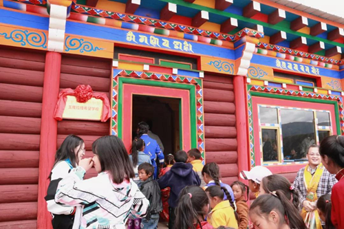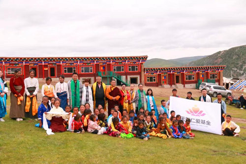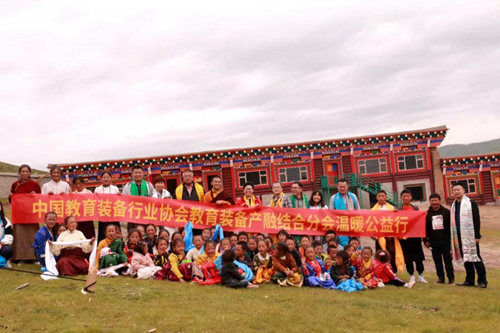 中國教育裝備行業協會教育裝備產融結合分會理事長朱良聰,中國教育裝備行業協會會展部主任張繼芳,中國教育裝備行業協會教育裝備產融結合分會秘書長劉二潮、副秘書長徐正,廣東天智實業有限公司董事長李美英、總經理朱端成,尼瑪活佛,共同為希望學校揭牌。學校師生及及當地藏民以藏族最尊貴的禮節歡迎各位嘉賓的到來。