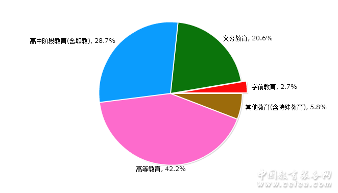 7月份招標(biāo)采購信息所屬領(lǐng)域統(tǒng)計情況如圖6所示:學(xué)前教育占比為2.7%;義務(wù)教育占比為20.6%;高中階段教育(含職教)占比為28.7%;高等教育占比為42.2%;其他教育(含特殊教育)占比為5.8%。