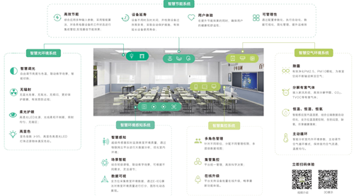 數(shù)言智慧環(huán)境教室解決方案將物聯(lián)網(wǎng)技術(shù)應(yīng)用到教室環(huán)境中,該解決方案由五個部分組成:智慧光環(huán)境系統(tǒng)、智慧環(huán)境感知系統(tǒng)、智慧集控系統(tǒng)、智慧空氣環(huán)境系統(tǒng)、智慧節(jié)能系統(tǒng)。同通過對聲學(xué)環(huán)境、光環(huán)境、空氣質(zhì)量(PM2.5、CO2、甲醛、TVOC、PM10等)、溫度、濕度等的實(shí)時監(jiān)測和調(diào)節(jié),一方面確保教室環(huán)境滿足國家相關(guān)標(biāo)準(zhǔn),另一方面為廣大師生營造一個健康、節(jié)能、高效、可管理的學(xué)習(xí)環(huán)境。