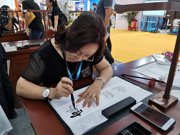 《中小學智慧書法教室裝備規(guī)范》團體標準的牽頭制定單位華文眾合參加了此次博覽會,并展出智慧書法教室,深受觀眾喜愛。多位行業(yè)協會領導蒞臨華文眾合展位進行參觀指導。