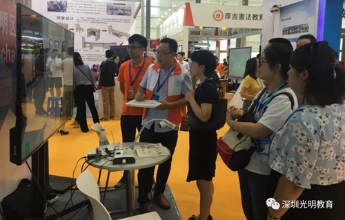 光明區教育局組織了區高級中學、東周小學、光明小學和愛華小學等學校參加了此次博覽會,在“深圳市中小學教育裝備應用成果主題展示區” 精彩亮相,向與會觀眾展示了光明區現代教育裝備在學校的深度融合與應用。