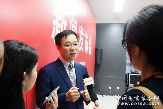 中國(guó)教育裝備行業(yè)協(xié)會(huì)副會(huì)長(zhǎng)兼秘書(shū)長(zhǎng)夏國(guó)明會(huì)后接受媒體采訪
