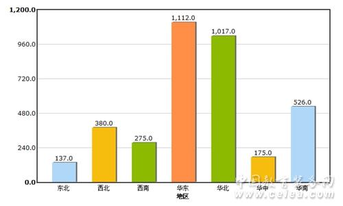 地區數據結果表明:10月份各地區招標采購信息量與去年同期相比,除華中地區外,其他地區均呈現大幅增長趨勢,與上月相比,除華北地區,其他地區均有不同程度的下降。省份當中,河北、北京,廣東、福建、山東等省份的招標采購信息量較高。地區數據的不同主要由來自地區經濟、教育政策、教育投入等因素的影響。