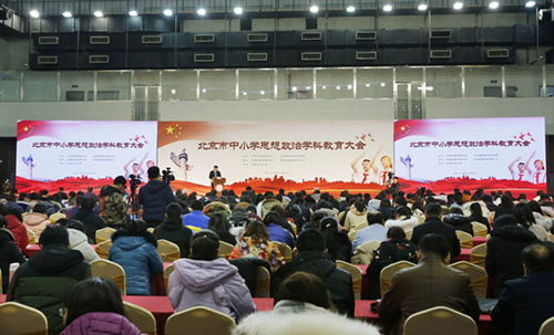為全面貫徹習近平新時代中國特色社會主義思想,落實習總書記在學校思想政治理論課教師座談會上重要講話精神和《關于深化新時代學校思想政治理論課改革創(chuàng)新的若干意見》《關于加強新時代中小學思想政治理論課教師隊伍建設的意見》,12月10日北京市教委在北京東城區(qū)匯文中學召開全市中小學思想政治學科教育大會。市教委、各區(qū)教委和教研部門負責同志,中小學思政課教師代表,以及天津、河北思政課教研員和教師代表共500余人參加大會。
