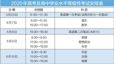 2020年是我市實(shí)施高考綜合改革的第一年。12月24日,市教委正式公布2020年高考及高中學(xué)業(yè)水平等級(jí)性考試具體時(shí)間安排。