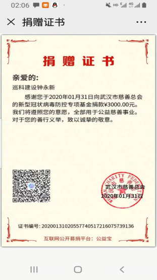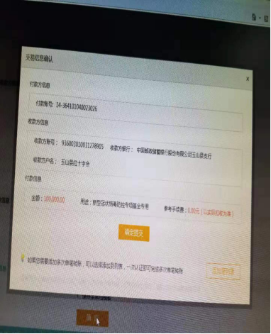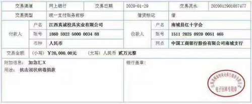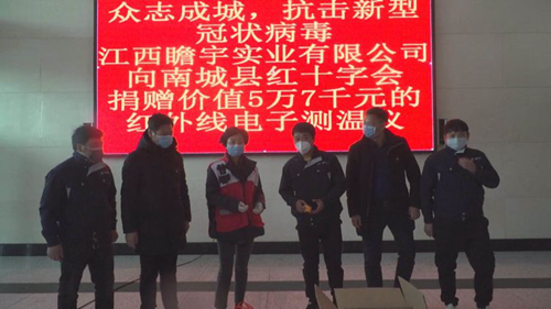 中飲智能技術股份有限公司捐贈上饒廣豐區政府防疫隔離區物資10萬元,江西省紅十字會5000元,南昌市創業促進會500元。