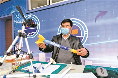 4月8日,北京市第十八中學科學教師李家茂正在線上開講科技趣味課,給學生講解如何制作小火箭。居家學習期間,該校開展了一系列科創趣味課程,深受學生喜愛。 本報記者 單藝偉 攝