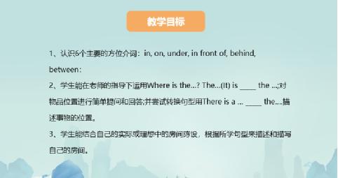 通過第一部分的學習,學生們對于6個方位介詞已經非常熟悉了,接下來就是如何在句型中運用它們啦。