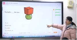 張老師進行了情景模擬,通過虛擬人物Mike角色,帶領學生學習并理解方位介詞在句型里的用法。為了更好鍛煉學生認句、識句能力,張老師創建了一個課堂活動進行分組PK,并使用希沃易課堂的“搶答”功能,讓同學們通過比手速的快慢來爭取上臺的機會,充分調動了學生的積極性。