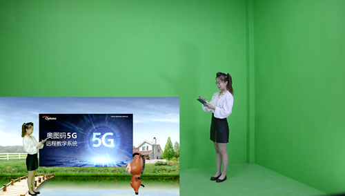 奧圖碼5G教學解決方案的應用方式是:教師在綠幕棚進行錄像 ,同時將影像傳輸到奧圖碼HQ Pro 1000影音處理器中,處理器也會將課程需要的的背景畫面、PPT簡報、3D畫面甚至AR影像與教師講課的身影融合,呈現出更加的沉浸的教學效果,然后實時將畫面傳遞到學生的屏幕上。