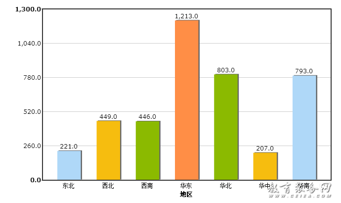 按照國家地理區域劃分,即東北地區、西北地區、西南地區、華東地區、華北地區、華中地區、華南地區(收集數據中不含中國港澳臺地區)。