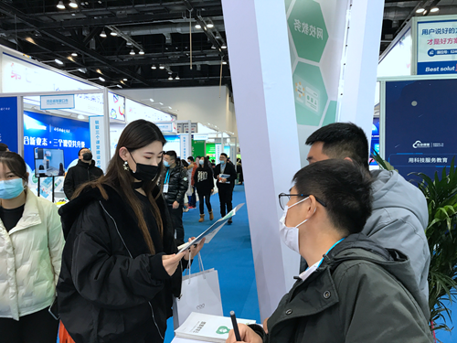 展位周圍人潮涌動,熱情的螳螂小伙伴為咨詢企業提供了詳細講解,深度交流了新一代教育行業解決方案在教育場景中的應用。