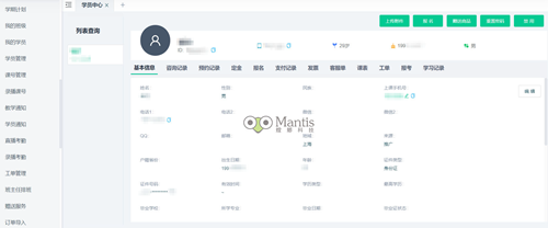 在后端服務環節,螳螂教育云可以幫助教育企業快速搭建功能齊全的網校商城,智能學服中心擁有一鍵智能排課,定制工單系統等功能,幫助企業為學員提供精細化服務。