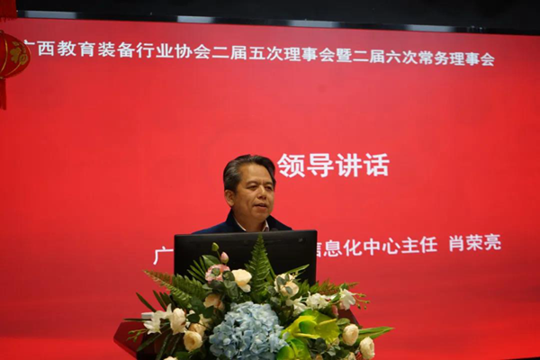 “陽(yáng)春布德澤,萬(wàn)物生光輝。”2021年3月3日,廣西教育裝備行業(yè)協(xié)會(huì)二屆五次理事會(huì)暨二屆六次常務(wù)理事會(huì)順利召開。廣西教育技術(shù)和信息化中心主任肖榮亮、副主任陳軍、廣西政府督導(dǎo)室副主任、國(guó)家教育部特邀督學(xué)王濱、專家組組長(zhǎng)陳鐵華老師和崇左市電教儀器站長(zhǎng)許華方、桂林市電教儀器站副站長(zhǎng)鄒世喜到會(huì)指導(dǎo),協(xié)會(huì)會(huì)長(zhǎng)、常務(wù)副會(huì)長(zhǎng)、副會(huì)長(zhǎng)等理事會(huì)代表及企業(yè)代表90余人參加了會(huì)議。