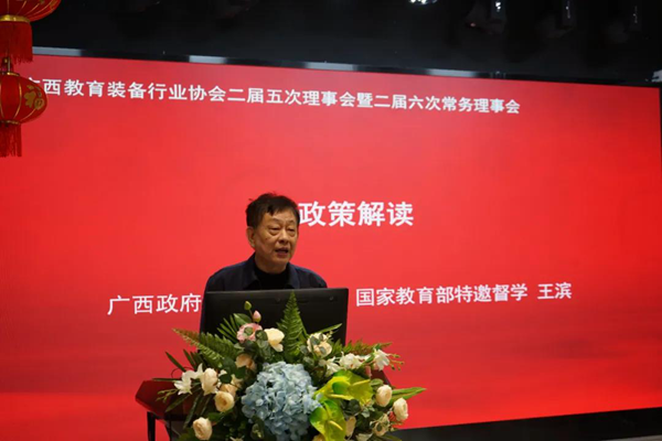 廣西政府督導(dǎo)室副主任,國(guó)家教育部特邀督學(xué)王濱在會(huì)議上作了教育政策的解讀。他在講話中指出,企業(yè)要了解教育改革發(fā)展形勢(shì)、研究教育改革發(fā)展的前沿信息、十四五規(guī)劃和2035年的遠(yuǎn)景規(guī)劃目標(biāo),了解教育發(fā)展的規(guī)劃目標(biāo)政策,了解國(guó)家在脫貧攻堅(jiān)中教育取得的成就,了解建立教育強(qiáng)國(guó),高質(zhì)量的教育體系的重要性。更要了解教育裝備面臨發(fā)展的機(jī)遇和挑戰(zhàn)。面對(duì)百年未有的大變局,科技創(chuàng)新成為國(guó)際競(jìng)爭(zhēng)力的大背景下,國(guó)家采取雙循環(huán)戰(zhàn)略,必定對(duì)教育加大投入,教育進(jìn)入實(shí)現(xiàn)現(xiàn)代化階段,企業(yè)要做大做強(qiáng),加強(qiáng)服務(wù)體系建設(shè),做好售后服務(wù)工作。教育裝備更要向智能化,綠色化,高端化發(fā)展。