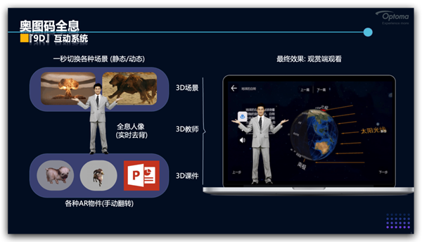 從最初的1D,到2D,遠(yuǎn)程教育不斷的發(fā)展,5G的到來(lái),AR技術(shù)的不斷成熟,升級(jí)/優(yōu)化智慧化教育體系勢(shì)在必行,奧圖碼立志打造MR的迪斯尼,帶大家進(jìn)入9D智慧教育時(shí)代,具體細(xì)節(jié)將在本次論壇演講中進(jìn)行揭秘。