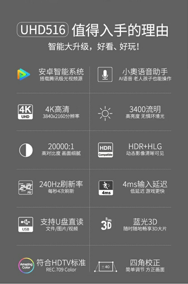 1、活動結束后,猜中冠軍并且其評論點贊數最高者,將獲得UHD516 4K投影機一臺。