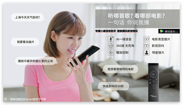 內建安卓9.0智能系統,搭載騰訊極光視頻源,歐洲杯,奧運會,電影大片,電視劇,綜藝,少兒,專題等內容網絡天下。初次語音搜索歌曲 即自動安裝QQ音樂。