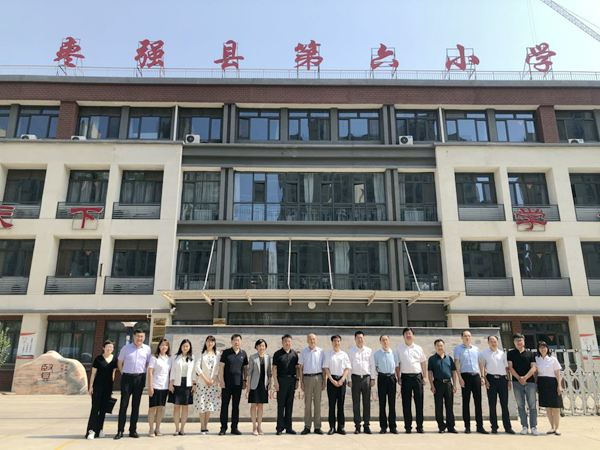 參與活動的代表在棗強縣第六小學教學樓前合影