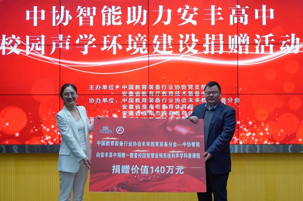 為貫徹落實(shí)黨中央的決策部署,踐行“我為行業(yè)辦實(shí)事”的時(shí)代新風(fēng)和價(jià)值導(dǎo)向,2021年10月13日,由中國(guó)教育裝備行業(yè)協(xié)會(huì)黨支部、安徽省教育技術(shù)裝備中心主辦,中國(guó)教育裝備行業(yè)協(xié)會(huì)未來(lái)教育裝備分會(huì)、淮南市教育體育局、壽縣教育體育局協(xié)辦,江蘇中協(xié)智能科技有限公司(以下簡(jiǎn)稱中協(xié)智能)支持的“我為行業(yè)辦實(shí)事 優(yōu)質(zhì)資源進(jìn)校園”捐贈(zèng)活動(dòng)在安徽省淮南市壽縣安豐高中舉行。