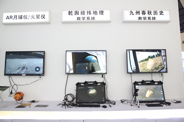 史地教室是羿飛教育的王牌項目,一直以來都備受行業關注。此次現場展出數字歷史沿革系統、互動演示實驗、AR地理沙盤、數字立體地形、數字模型、交互式3D多媒體教學系統等。除此之外還有乾輿經緯地理教學系統、九州春秋歷史教學系統、以及首次亮相的AR月球儀、AR火星儀、AR夢想地理堂、黍律千秋歷史秤等。