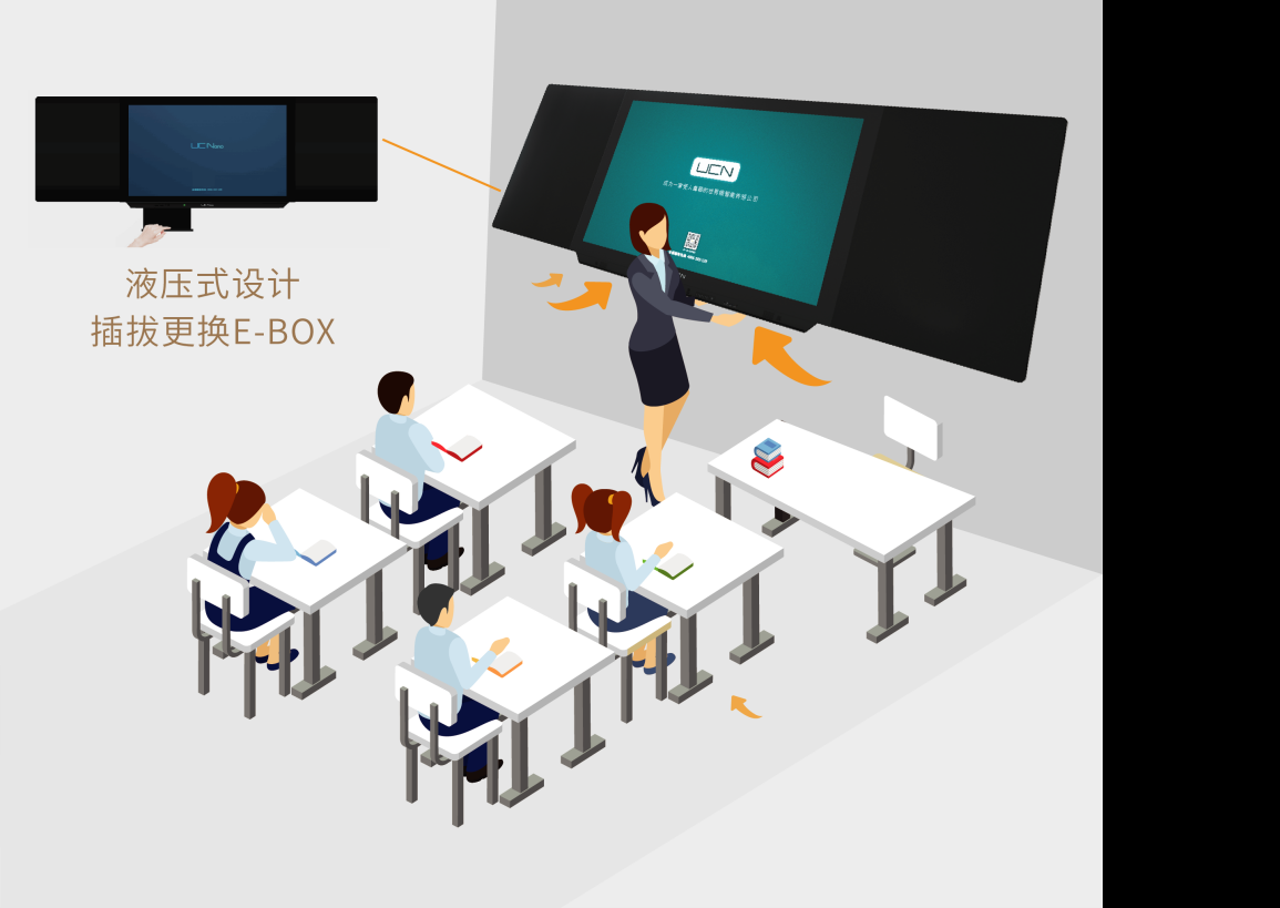 Box設(shè)計(jì),將視頻卡、OPS等易損部件全部集成在一個(gè)小盒子里,如果出現(xiàn)故障,只需直接拉出更換備份E-Box。無(wú)需等待上門(mén)維修服務(wù),不耽誤學(xué)校正常教學(xué)活動(dòng)。