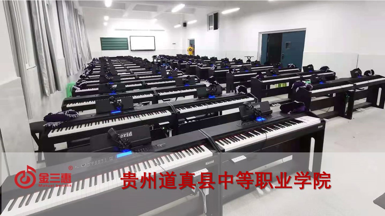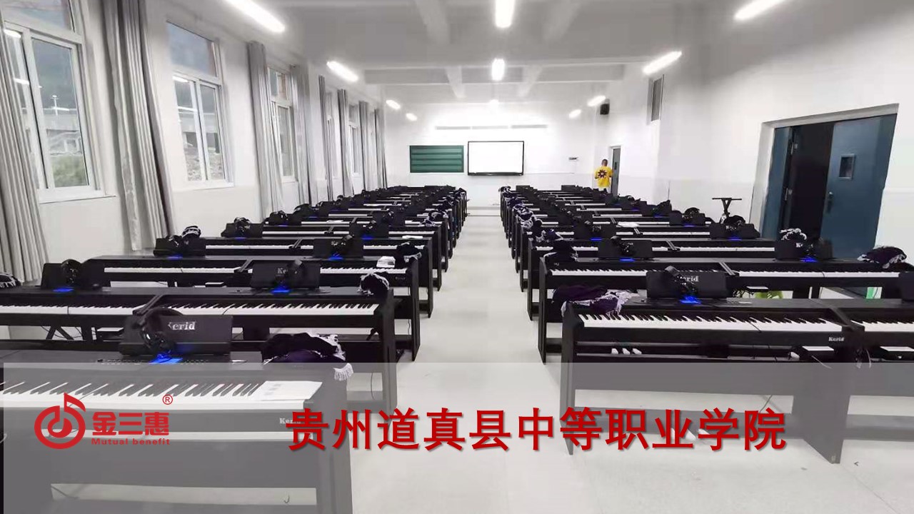 貴州道真縣中等職業學院的電鋼琴教室正式開始使用,本校數字化音樂教室由北京金三惠科技有限公司負責提供、安裝、培訓。