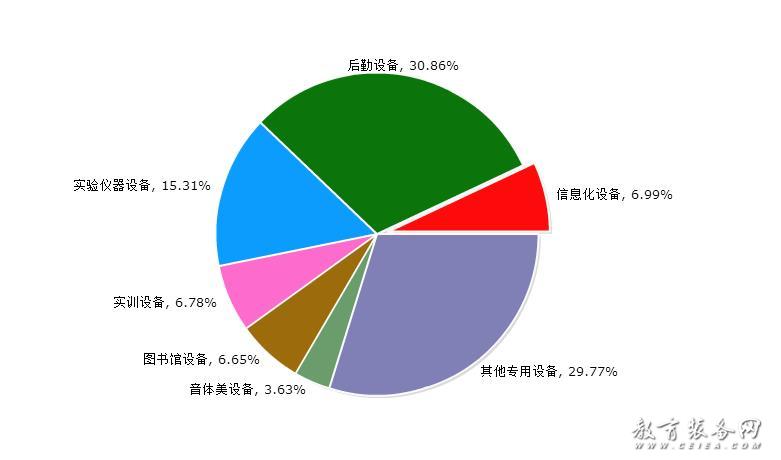 根據對教育裝備細分的歸納,教育裝備網將教育裝備具體劃分為七大類,即信息化設備(含智能平板、錄播系統、智慧黑板等),后勤設備(含校園基建、安防設備、食堂設備、課桌椅等),實驗儀器設備(含儀器儀表、實驗室平臺等),實訓設備(含實訓系統、實訓設施等),圖書館設備(含借還系統、微型圖書館等),音體美設備(含樂器、體育設施、美術用品等),其他專用設備(含創客教育、心理健康特教設備等)。
