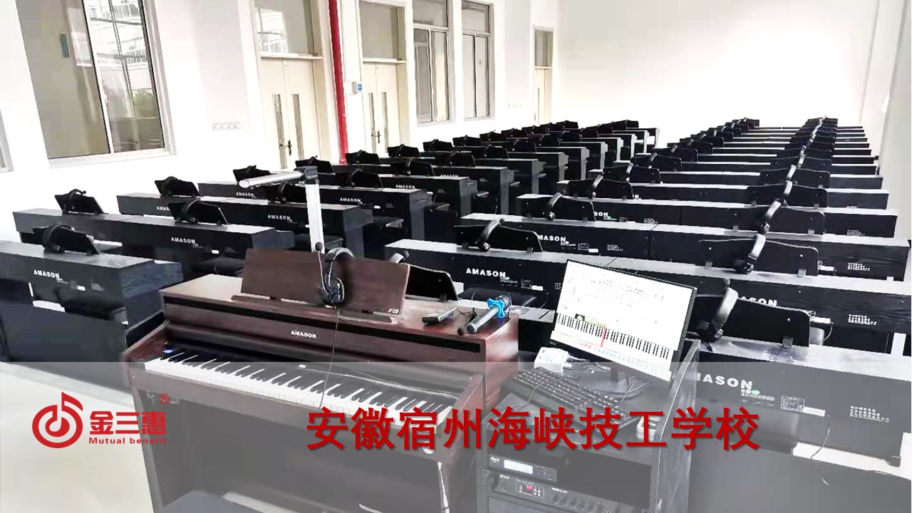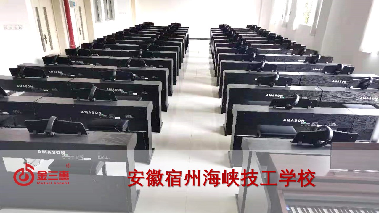 安徽宿州海峽技工學校的數字音樂電鋼琴教室正式開始使用,本校電鋼琴教室由北京金三惠科技有限公司負責提供、安裝、培訓。