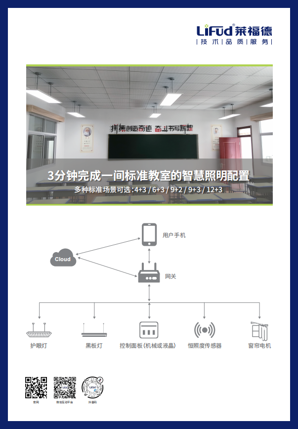 針對智慧教室照明項目,萊福德可為客戶提供包括電源、控制面板、網關、感應器、窗簾機電、APP軟件、云平臺等Zigbee系統全產品一站式采購。