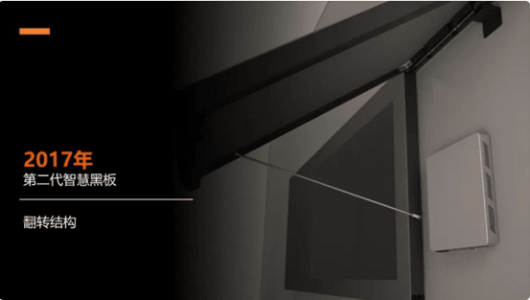 2017年,第二代智慧黑板也問世了。在這一次的產品迭代中,歐帝開始把結構列入了產品設計的核心需求之一,二代采用了翻轉結構,改變了黑板在教室中管理維護的效率。