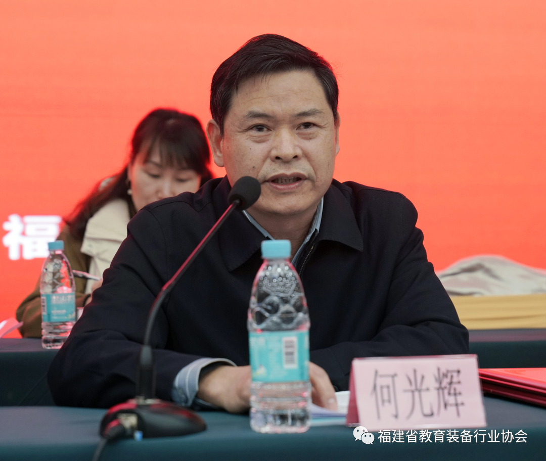 會上,福建省教育裝備與基建中心主任何光輝做了重要講話。他首先對本次會員大會的召開表示熱烈的祝賀!他說,全省教育裝備行業企業在各級地方黨委政府的正確領導下,積極克服三年疫情影響,團結拼搏,有效推動了全省教育裝備行業的健康發展,為全省教育事業持續向好發展做出了應有的貢獻,反映出我省教育裝備行業事業發展的良好勢頭。