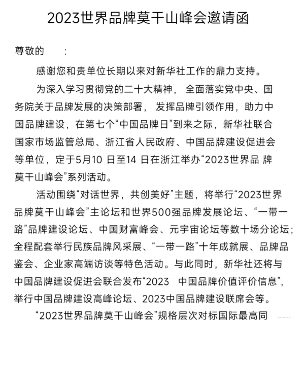 2023世界品牌莫干山峰會(huì)邀請(qǐng)函