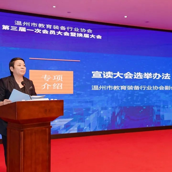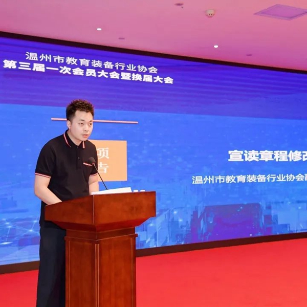 最后,他希望新一屆領導班子能帶領溫州市教育裝備發揚溫州四千精神,不斷提高協會自身的服務能力和影響力,推動教育裝備創新發展,努力開創協會和行業高質量發展新局面,為高質量教育做出新貢獻。