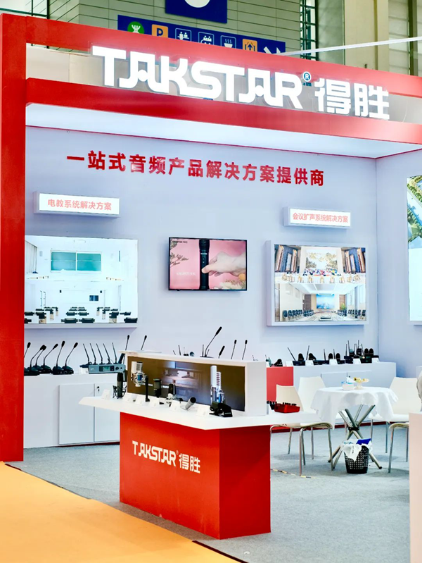 得勝攜旗下“TAKSTAR得勝”電教系統、音響系統、會議擴聲系統、校園IP廣播系統及多套一站式音頻應用解決方案亮相此次展會。此外,得勝還展出了麥克風、耳機、擴音器等電聲產品,滿足各領域應用需求。