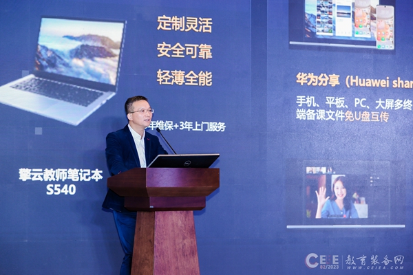 中國(guó)教育裝備行業(yè)協(xié)會(huì)副會(huì)長(zhǎng)夏國(guó)明和華為終端業(yè)務(wù)大中華區(qū)副總裁、政企業(yè)務(wù)部部長(zhǎng)賀磊分別為論壇致辭,中國(guó)教育裝備行業(yè)協(xié)會(huì)教育信息化裝備分會(huì)常務(wù)副理事長(zhǎng)丁新主持論壇會(huì)議。