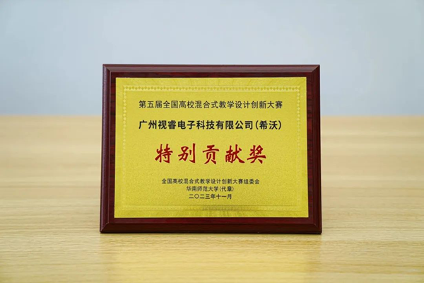 11月12日,第五屆全國高校混合式教學(xué)設(shè)計(jì)創(chuàng)新大賽閉幕式暨頒獎(jiǎng)典禮在華南師范大學(xué)舉行。其中廣州視睿電子科技有限公司(希沃)作為官方技術(shù)支持單位為大賽提供賽事直播、設(shè)備保障等支持,獲得“特別貢獻(xiàn)獎(jiǎng)”。