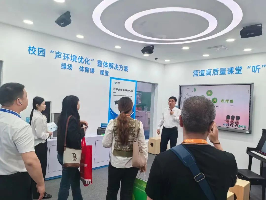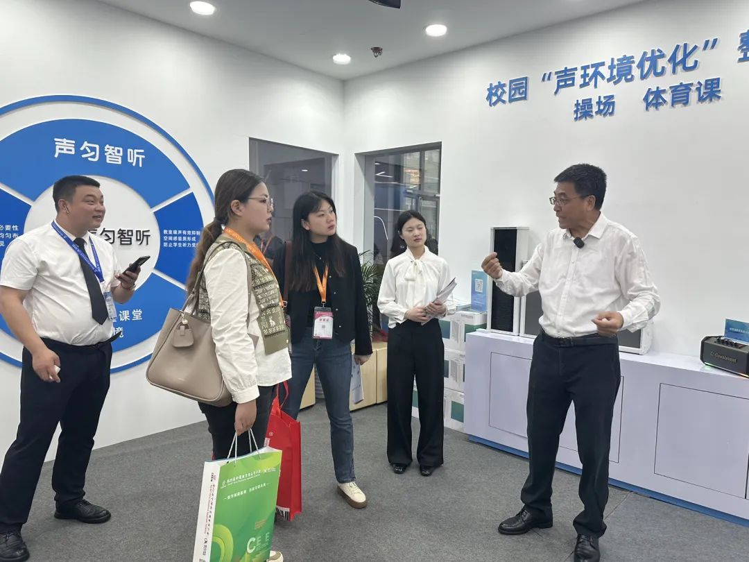 金三惠展位一站式校園聲環境優化整體解決方案,引來眾多教育行業嘉賓好友駐足感受。