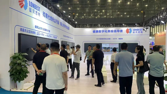 在為期三天的展會中,藍貝思特展區人頭攢動,吸引了眾多參觀者的目光。光能黑板憑借以其綠色環保、無粉塵無污染的特性,以及對學生視力和健康的保護效果,得到了廣大參觀者的高度評價。藍貝思特的光能板不僅滿足了教育裝備市場的需求,更體現了公司在科技創新和環保理念方面的領先地位。